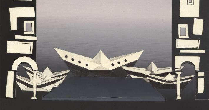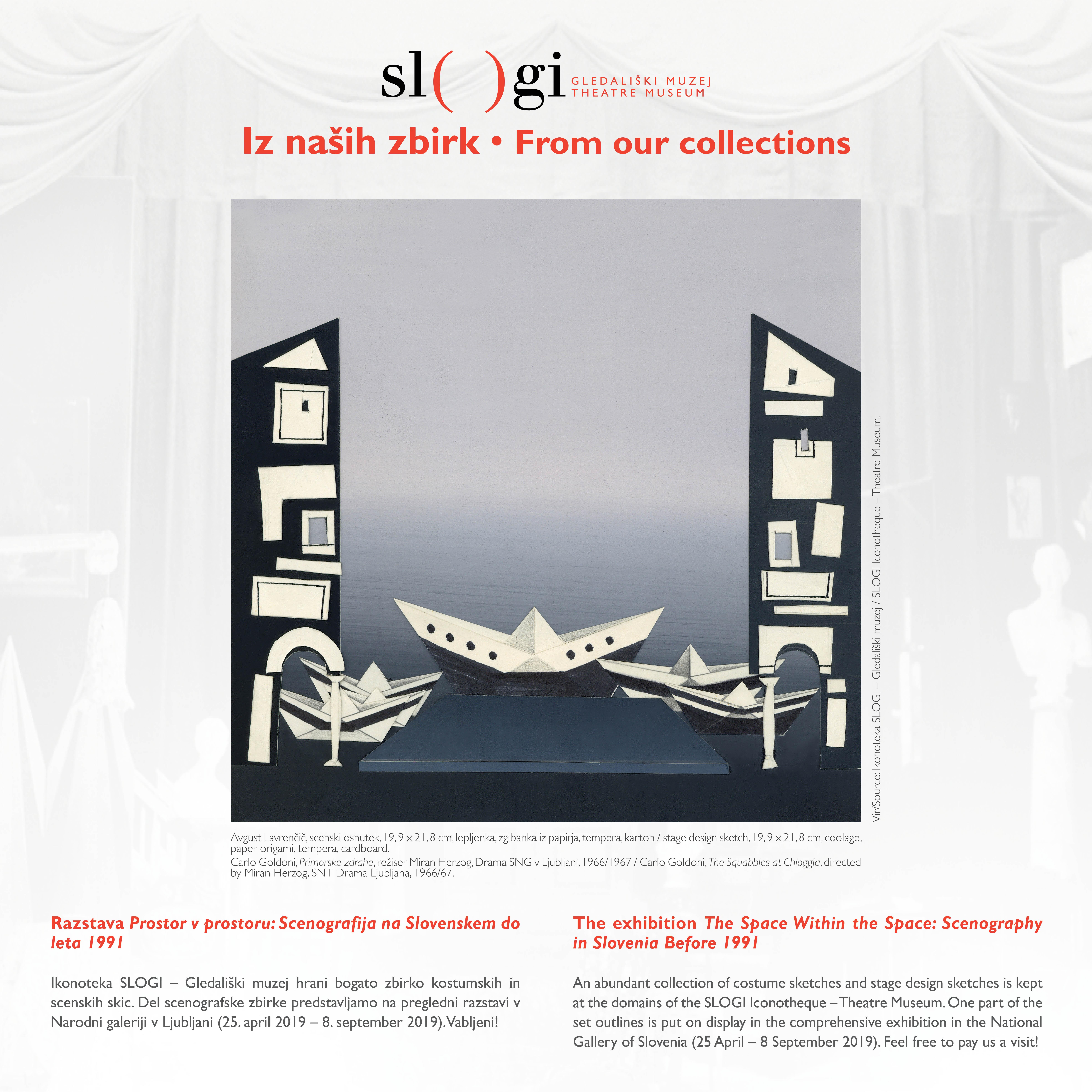 We are presenting our our collections. In July 2019 we are publishing Avgust Lavrenčič’s stage design sketch (19, 9 x 21, 8 cm, coolage, paper origami, tempera, cardboard) for the performance Carlo Goldoni, The Squabbles at Chioggia, directed by Miran Herzog, SNT Drama Ljubljana, 1966/67.