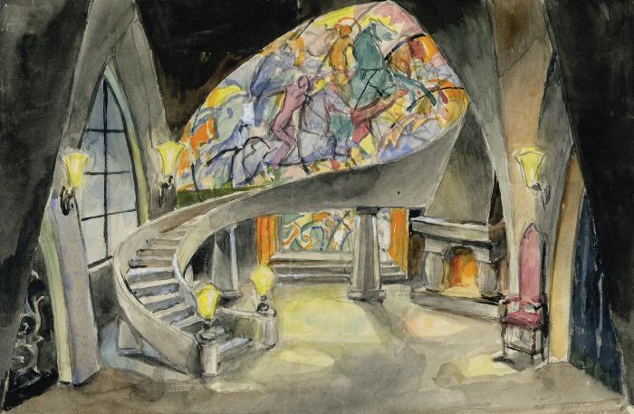 Ivan Vavpotič, scenski osnutek za uprizoritev Marij Kogoj: Črne maske (režiser Boris Krivecki, Opera Narodnega gledališča v Ljubljani, 1928/29). Vir: Ikonoteka SLOGI – Gledališki muzej.Vir: Ikonoteka SLOGI – Gledališki muzej.