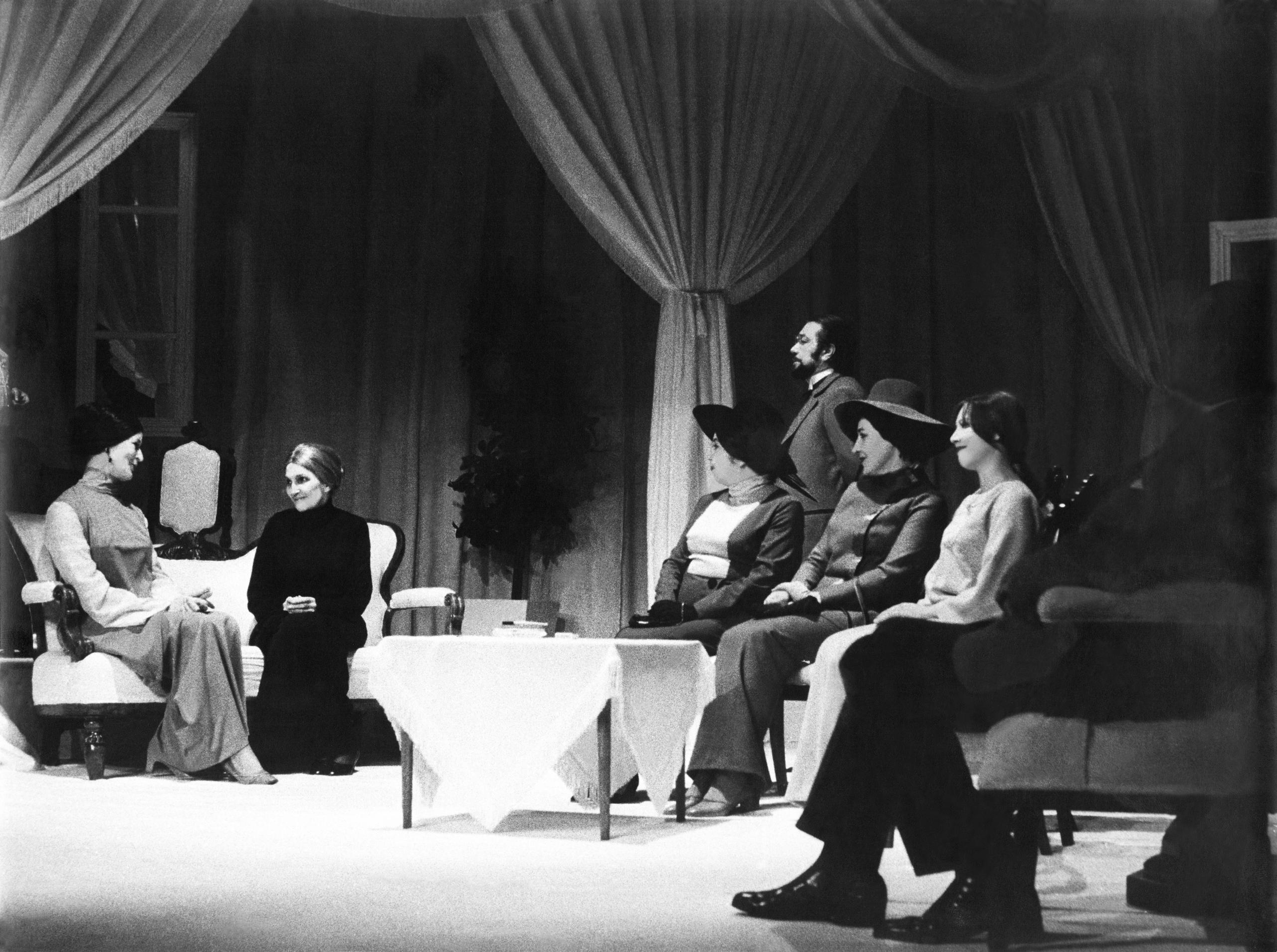 Luigi Pirandello, Right You Are – If You Think You Are, directed by Dušan Mlakar, SNT Nova Gorica, première 17 May 1979. In the photo: Dragica Kokot, Angelca Hlebce, Irena Urbič, Sergej Ferrari, Metka Franko, Mira Lampe Vujičić. Photo: Foto atelje Pavšič Zavadlav. Source: SLOGI Iconotheque – Theatre Museum.