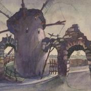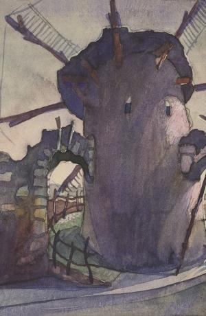 Predstavljamo vam zbirke SLOGI – Gledališkega muzeja. Junija objavljamo scenski osnutek Maksa Kavčiča (15,3 x 21 cm, akvarel) za uprizoritev Jules Massenet: Don Kihot (režiser Hinko Leskovšek, Opera SNG v Ljubljani, 1949/1950).