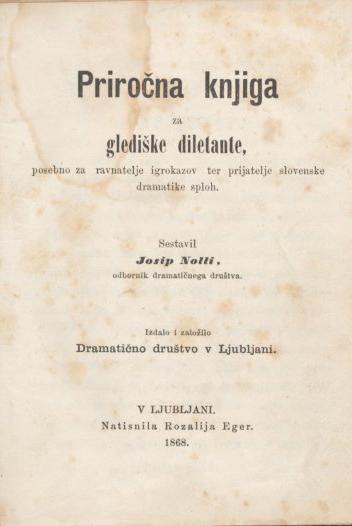 Josip Nolli: Priročna knjiga za glediške diletante, 1868