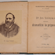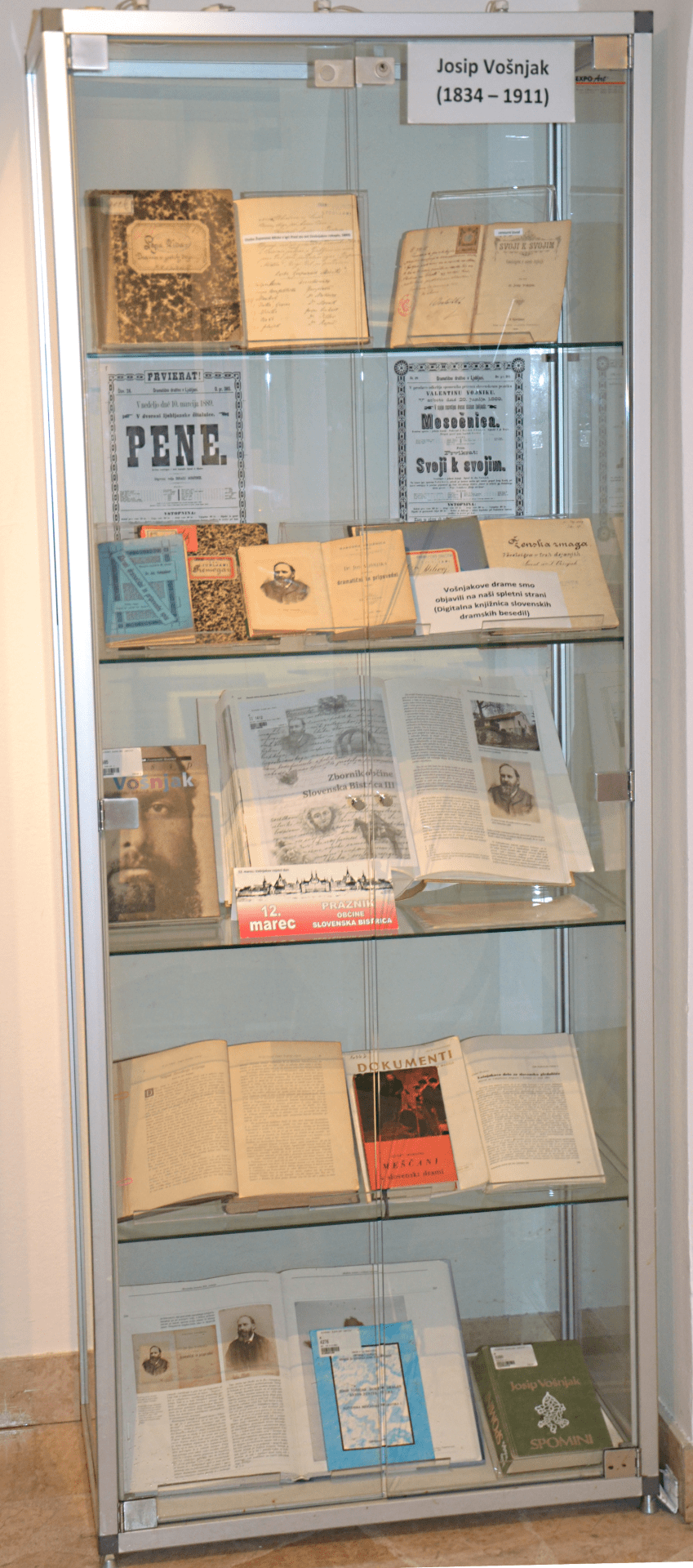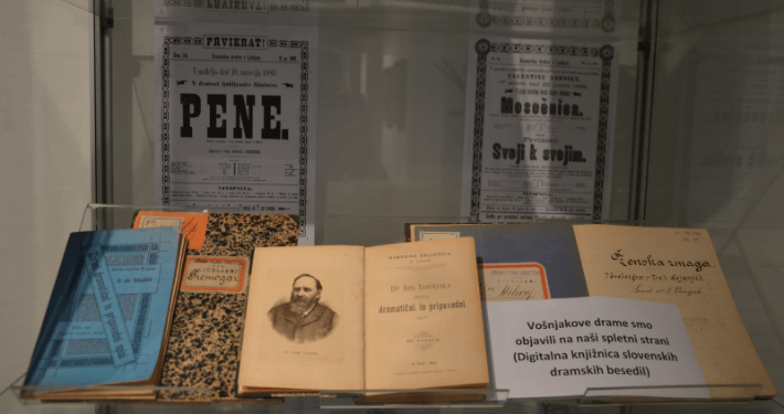 Povod za knjižno razstavo je spletna objava Vošnjakovih dramskih besedil. Na našem spletnem portalu (Digitalna knjižnica) so od 2018 dalje dostopne domala vse Vošnjakove gledališke predloge. Objavili smo dve verziji igre Svoji k svojim (1889, 1891), dramo Pene, komediji Ministrovo pismo in Ženska zmaga, zgodovinsko igro Pred sto leti ter njeno različico Županovo Miciko (Vošnjakovo soavtorstvo). Sledijo drame Lepa Vida, Premogar in Doktor Dragan. Ta besedila iz Vošnjakovega zrelega obdobja s sodobno vsebino in kompleksno izrisanimi značaji nakazujejo približevanje slovenske dramske literature modernim evropskim literarnim tokovom, približevanje, ki ga je v celoti realiziral šele Ivan Cankar.