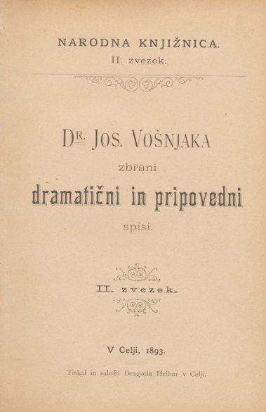 Josip Vošnjak: Zbrani dramatični in pripovedni spisi, 1868