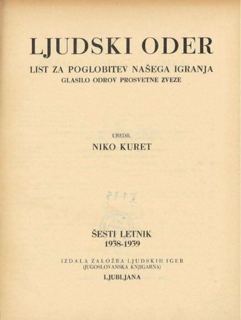 Ljudski oder, list za poglobitev našega igranja, šesti letnik, številke 1 – 6, 1938/39.