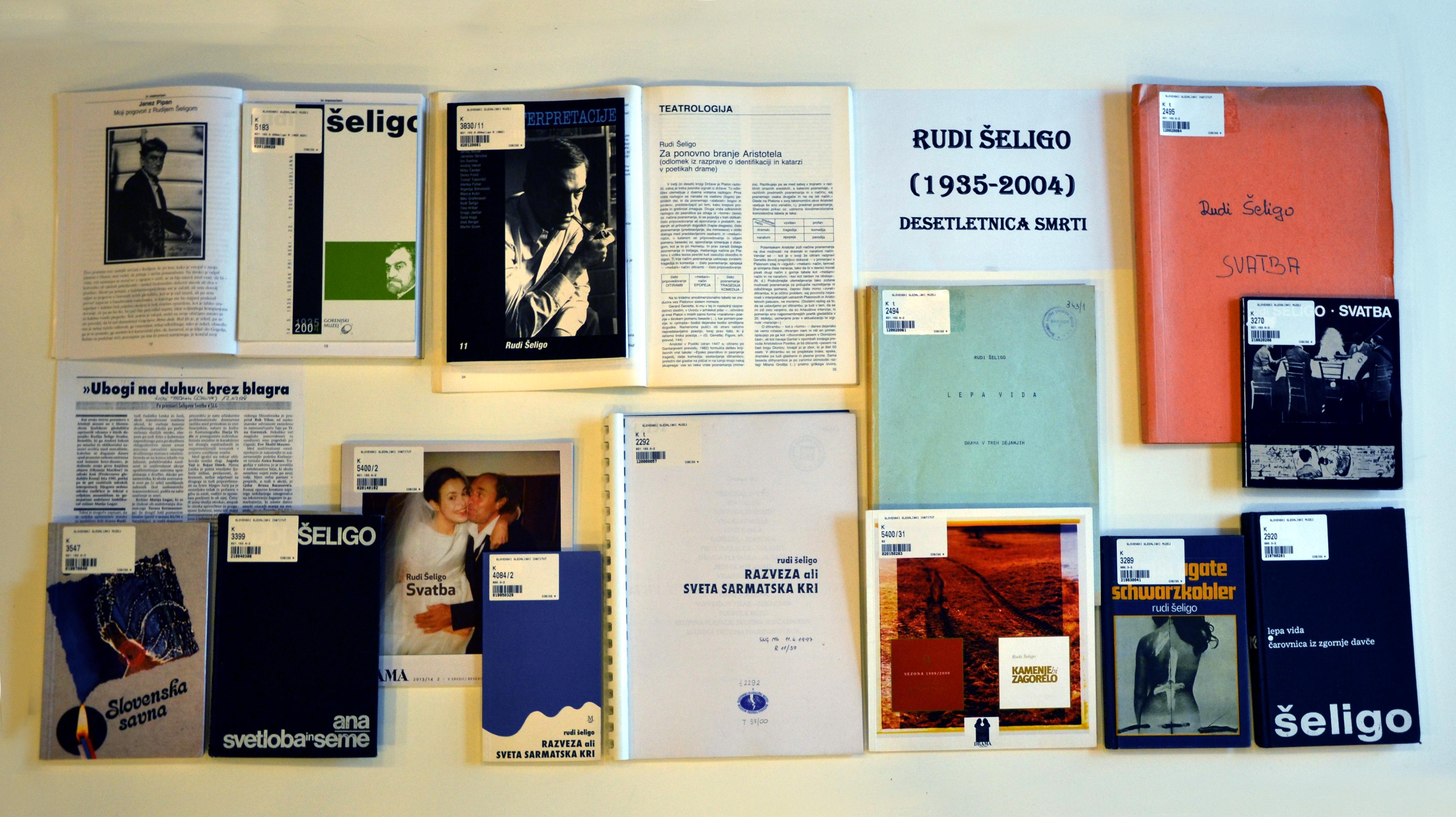 V izbor razstavljenega gradiva vključujemo nekatere knjižne izdaje in tipkopise dramskih besedil, gledališke liste ter gradivo o pisatelju. Dramska dela Rudija Šelige so po pravilu takoj po nastanku izhajala kot monografije pri najuglednejših založbah, pogosto pospremljene s tehtnimi zapisi o njihovi vsebini in dometu (prispeval jih je predvsem Andrej Inkret, pa tudi drugi Šeligovi sodobniki in interpreti). V zadnjih desetletjih smo v knjižnici zbrali tudi številne tipkopise, ki so jih uporabljali ob nastajanju gledaliških uprizoritev in radijskih iger. Zaradi prostorske omejenosti ne moremo predstaviti prevodov omenjenih tekstov, moramo pa vsaj omeniti pomembno prisotnost avtorja v nekdanjem jugoslovanskem prostoru. Poleg prevodov v srbščino so nastali tudi številni prevodi njegovih dramskih besedil v druge jezike.