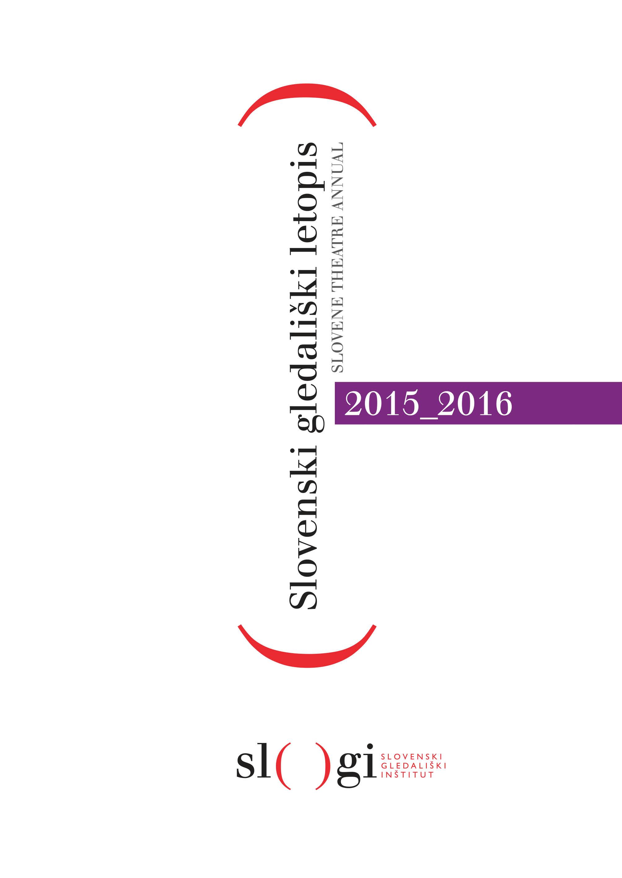 The Slovenian Theater Annual 2015/2016 is the 24th in a row and the 29th continuation of the Repertoire of Slovenian Theaters (1867-1967). The Annual is based on the accessible online database of Slovenian theater production (on the portal www.sigledal.org), but the collected data in the Annual are significantly upgraded – with editorials, information about festivals and awards, with data on reprise and guest appearances, summarizing and comparing data between specific theaters (on a statistical table).
