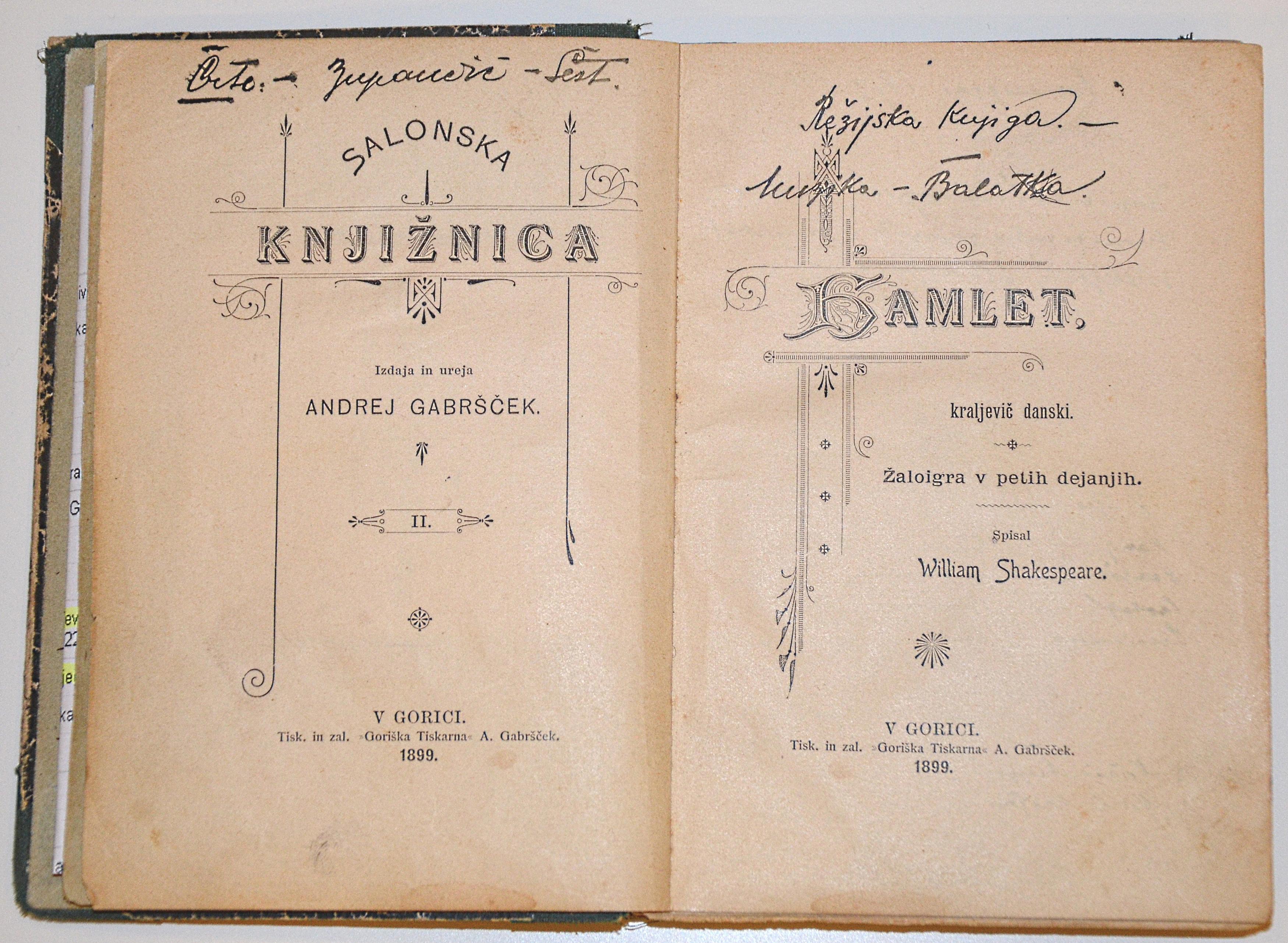 Med zanimivejšimi eksponati je izvod prve slovenske izdaje Hamleta, ki ga je Osip Šest uporabljal kot režijsko knjigo, ko je pripravljal uprizoritev v ljubljanski Drami (premiera je bila 26. januarja 1922).